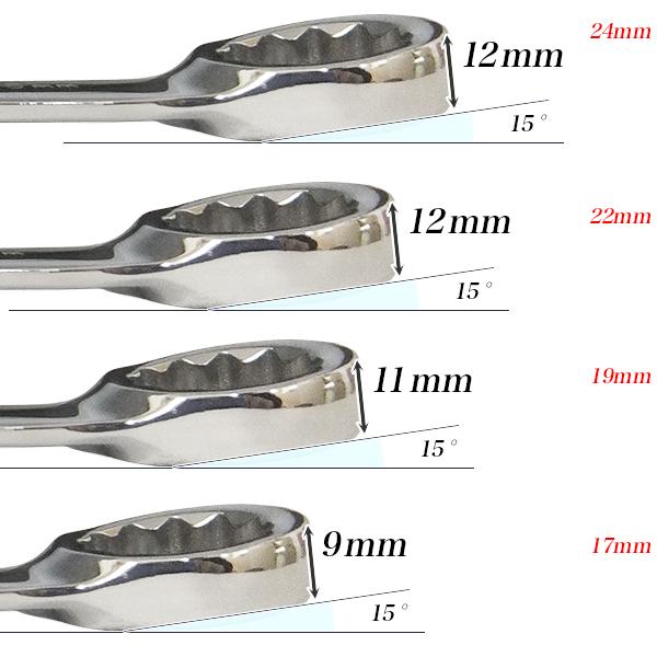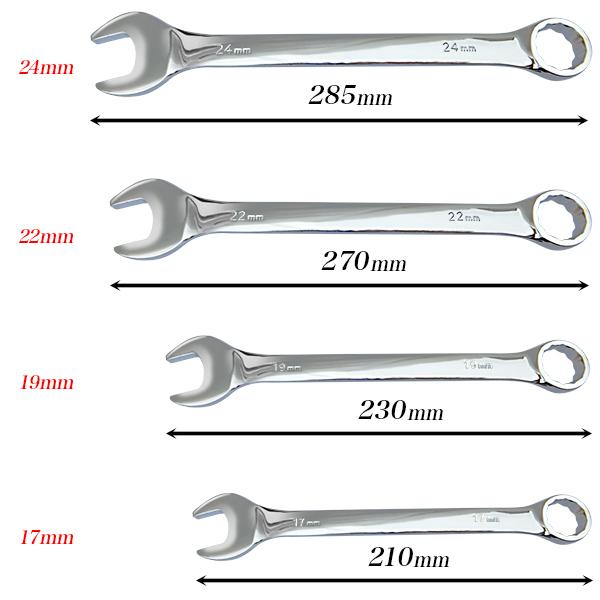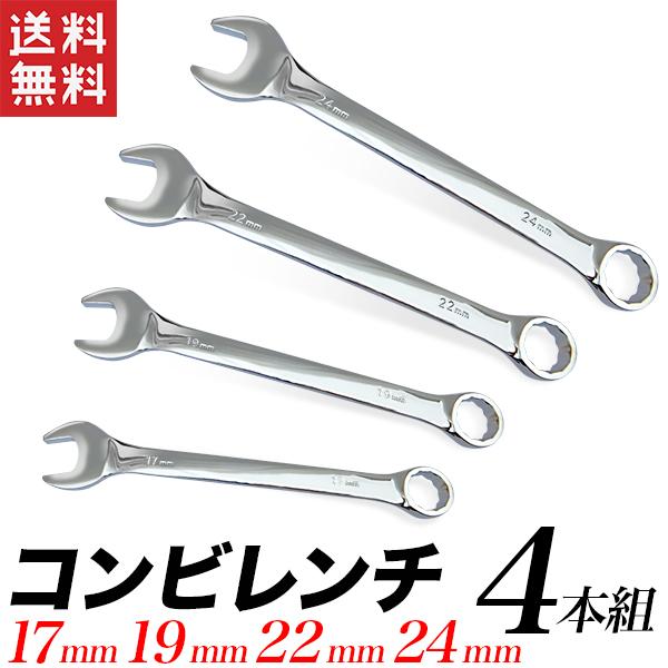 コンビレンチ 17mm/19mm/22mm/24mm 4本セット スパナ めがねレンチ コンビネーションレンチ 送料無料
