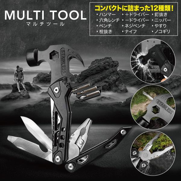 マルチツール アウトドア 12種類 工具 ナイフ キャンプ テント キャンプ用品 ハンマー ペンチ ドライバー 便利グッズ 防災グッズ m-tool02