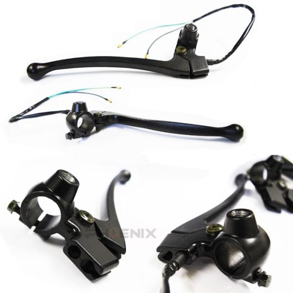 クラッチレバー 左右セット バイク 汎用 ブレーキ クラッチ スイッチ コード ミラーホルダー付き ブラック