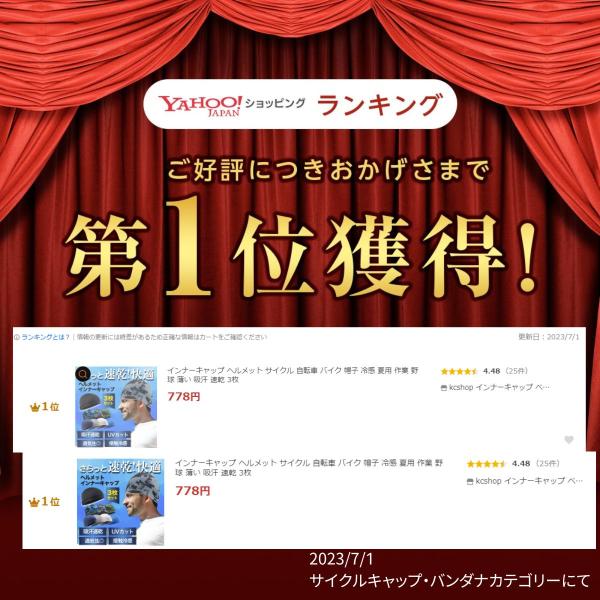 インナーキャップ ヘルメット サイクル 自転車 バイク 帽子 冷感 夏用 作業 野球 薄い 吸汗 速乾 3枚