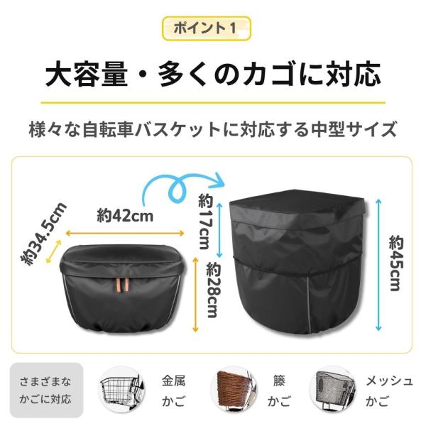 自転車かごカバー 前 防水 大型 おしゃれ ワイド 大きめ 二段式 カゴカバー かぶせるだけ 厚手 破れにくい 籠