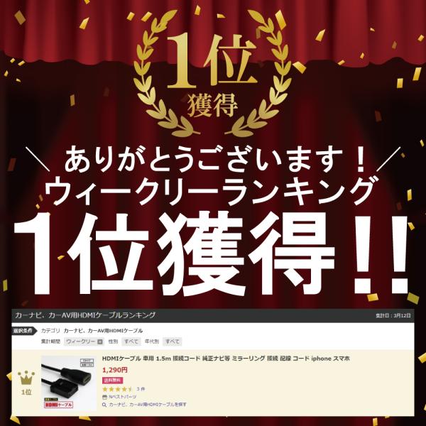 HDMIケーブル 車用 1.5m 接続コード 純正ナビ等 ミラーリング 接続 配線 コード iphone スマホ