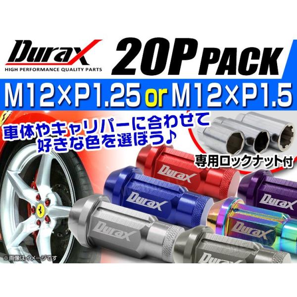 ホイールナット レーシングナット M12 P1.25 P1.5 ロング ロックナット 色選択 自動車 袋 Durax