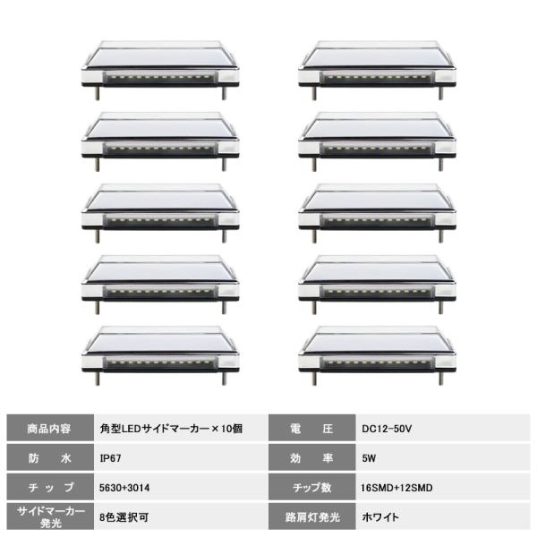 ▼トラック 軽自動車兼用 LEDサイドマーカー 10個セット 路肩灯 角形面発光 8色選択可能 マーカーランプ 12V 24V車用トラックマーカー LED28連 無極性 外装