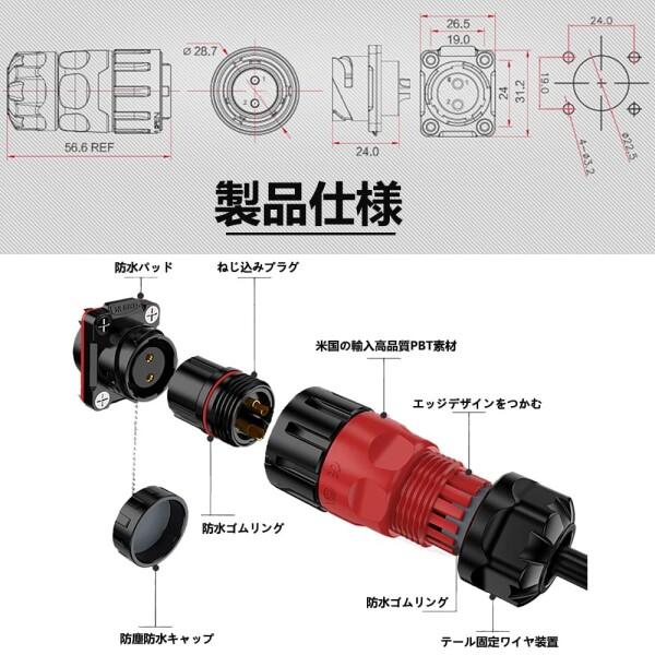 AUTKLERキャンピングカー外部電源入力キット2芯丸型航空防水コネクター, IP67オス-メスソケット20A