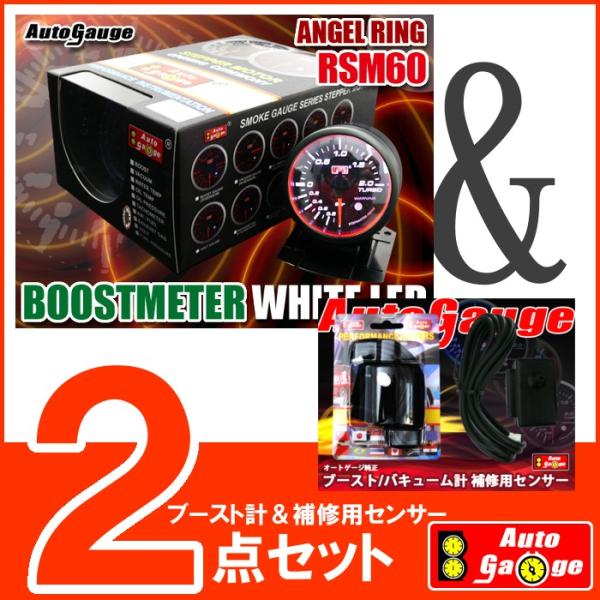 ブースト計 RSM 60Φ エンジェルリング ホワイトLED + 補修用センサー 2点セット
