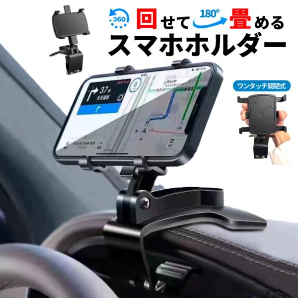 スマホホルダー 車 車載 車用 携帯ホルダー 車載スマホホルダー クリップ ワンタッチ式 360°回転 ミラー取り付け サンバイザー取付 ナビ