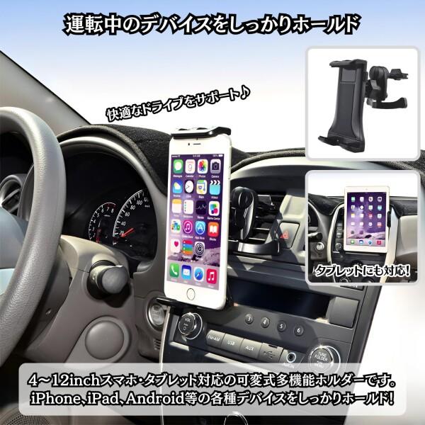 Charmoon 車 タブレットホルダー スマホホルダー エアコン 吹き出し口 iPhone iPad 4〜12インチ 対応