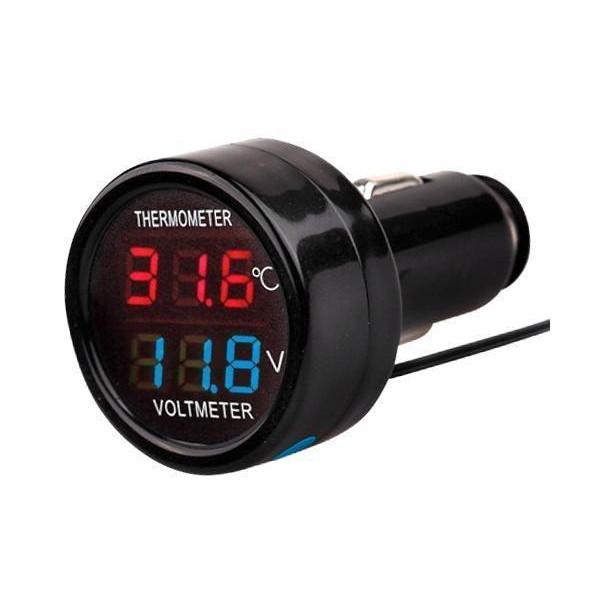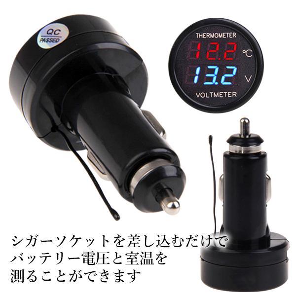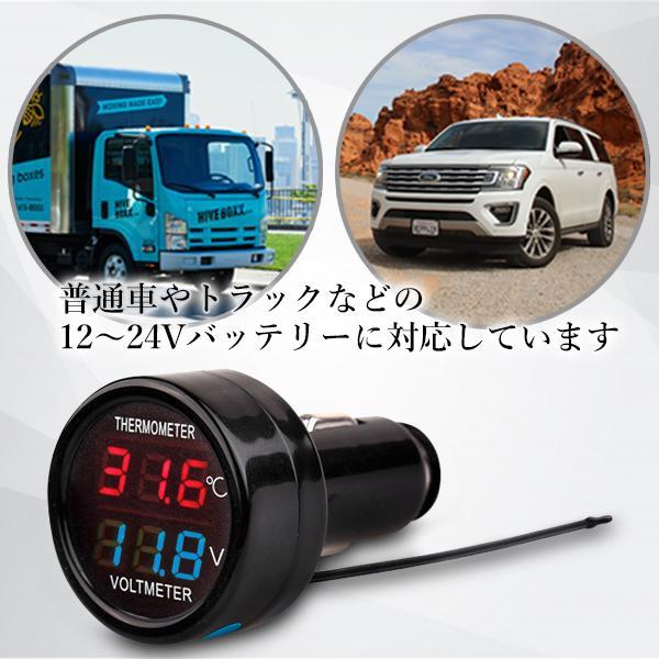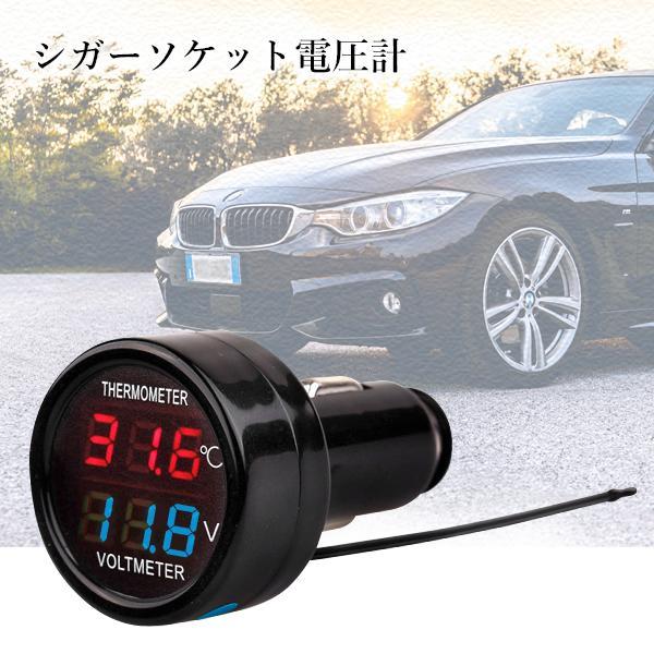 シガーソケット 電圧計 温度計 2in1 デジタル 測定 バッテリーチェッカー シガーライター 車 車内 12V 24V ((S