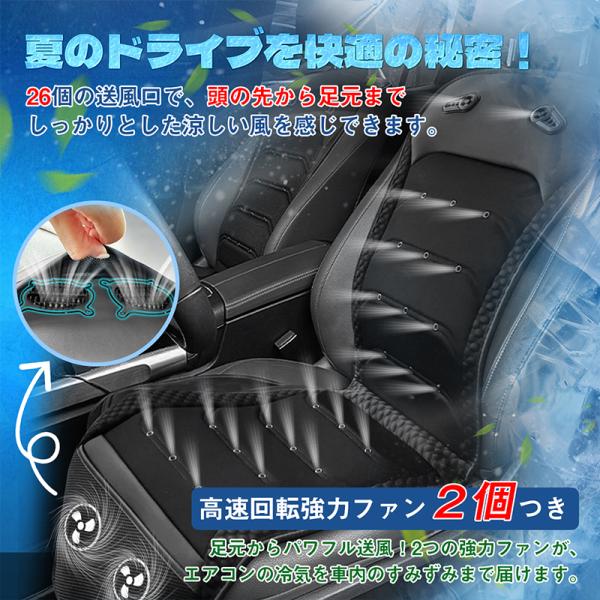 車シート クールシート クールカーシート RAKU 2つ強力ファン付き 26個の送風口 無段階風量調整 優れた通気性 柔らかいクッション 冷気循環 低騒音 取付簡単