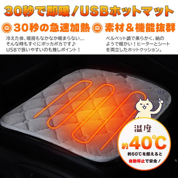 ホットクッション 電気座布団 USB 4カラー ホットマット 電気マット 電熱クッション ホットシート 勉強 防寒 オフィス 椅子 滑り止め 暖かい