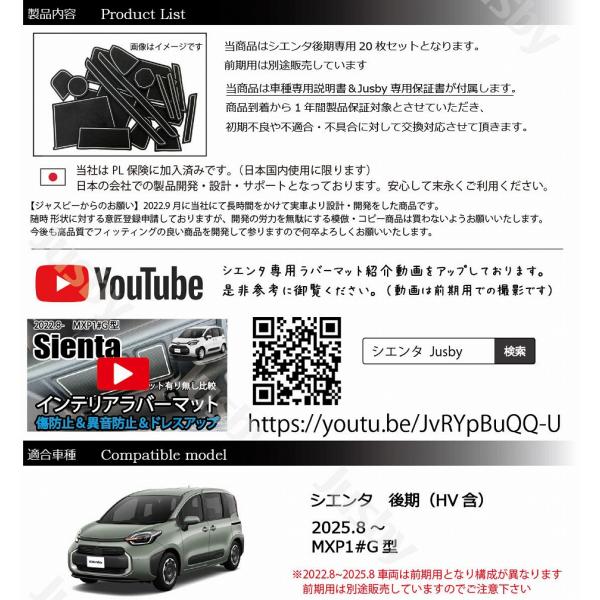 シエンタ 後期用 インテリアラバーマット(ホワイトorブラウン) ドアポケットマット sienta 10系 MXP1#G型 フロアパーツアクセサリー 内装保護ドレスアップ