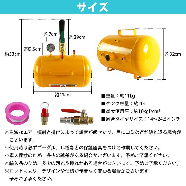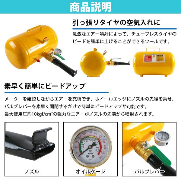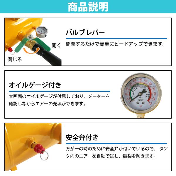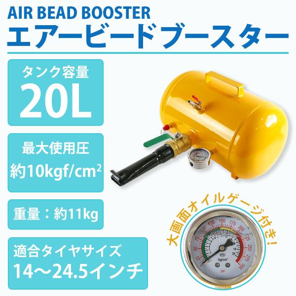 ビードブースター ゲージ付 空気入れ 充填 20L エアー タンク 引っ張り タイヤ ビート 上げ ブースター クロカン オフロード