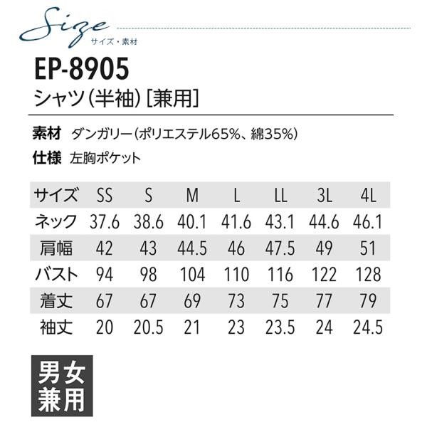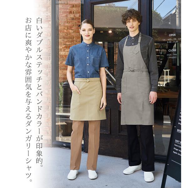 半袖シャツ ダンガリーシャツ アルべ EP-8905 男女兼用 レストラン カフェ 飲食店 ユニフォーム 制服 接客 メンズ レディース arbe