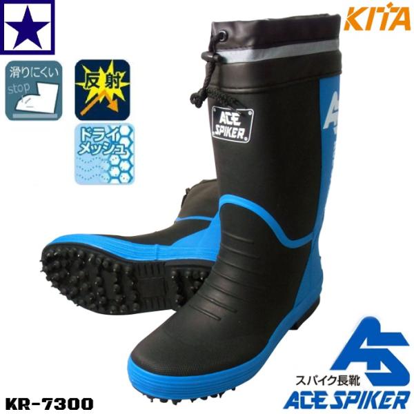 喜多 KR-7200 ゴム製カバー付き スパイク長靴 キタ kita KR7200 7200 ピンスパイク 滑りにくい 反射テープ