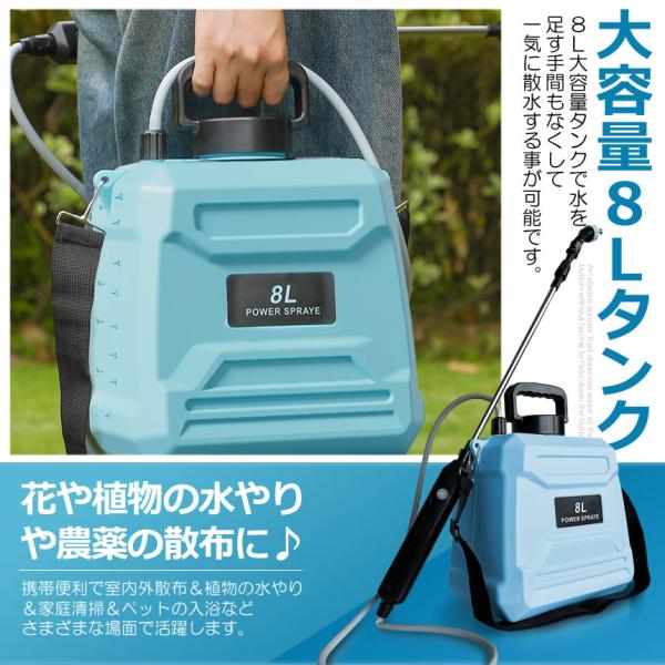 噴霧器 電動 8L 大容量 充電式 電動 88cm 伸縮式 噴霧器 肩掛け式 バッテリー式 日本語説明書つき WATERHELP