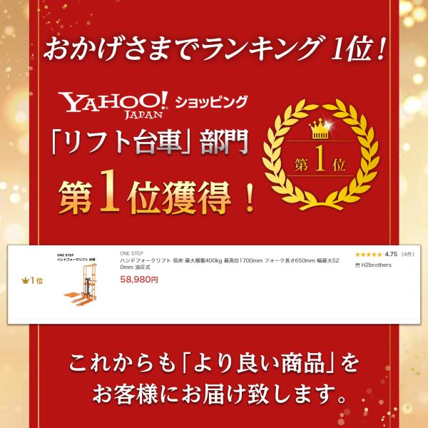 ハンドフォークリフト 400kg 最高位1700mm フォーク長さ650mm 幅最大520mm 油圧式 台車 ハンドリフト 低床