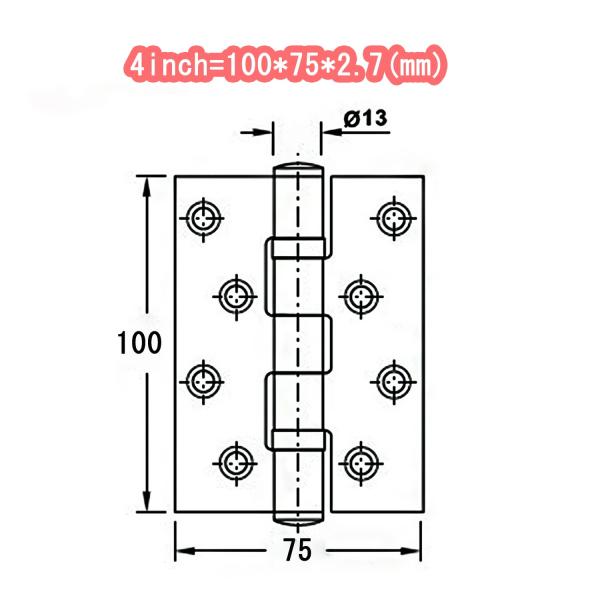 堅塁金物 蝶番 平丁番 ステンレス鋼のヒンジ 一般的な左右対称型蝶番2枚入 (4inch長さ100MM 広さ75MM 厚さ2.7MM)