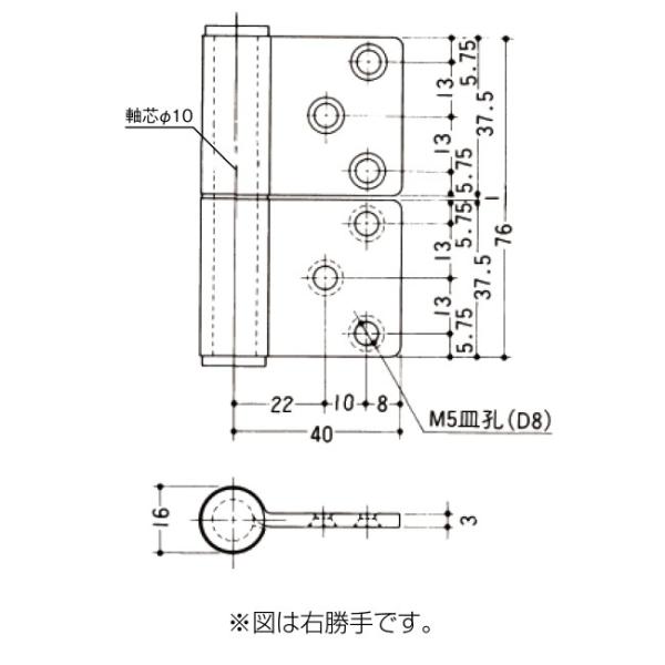 PLUS K-33-76 ステンレス KJ 面付旗丁番 鉄芯 3x76 ヘアーライン
