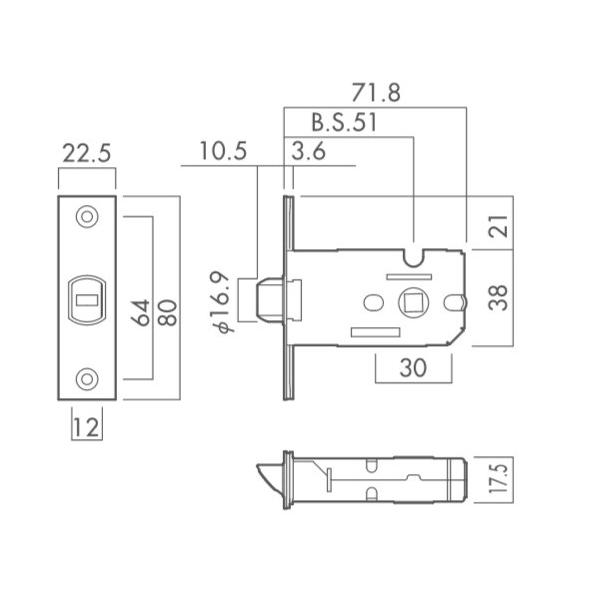 GIKEN GKLS LS 川口技研 レバーハンドル用ラッチケースのみ LS 交換用 バックセット51mm 角フロント 角芯サイズ7mm [4個までネコポス便発送]