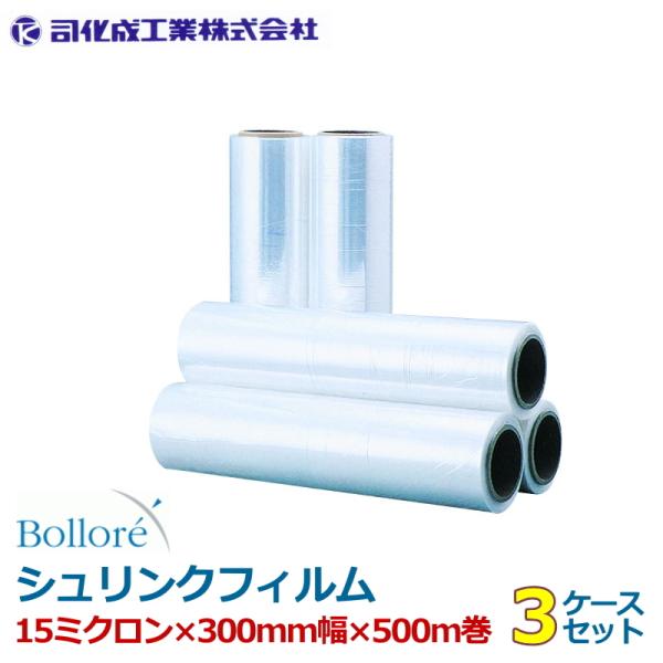 シュリンクフィルム ロール 司化成 15ミクロン300mm幅×500m巻 3ケースセット 半折フィルム ボローレ 個人名義宛配送不可