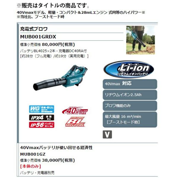 マキタ 充電式ブロワ MUB001GZ 本体のみ ブロワ機能のみ 40Vmax対応 makita セット品バラシ 在庫