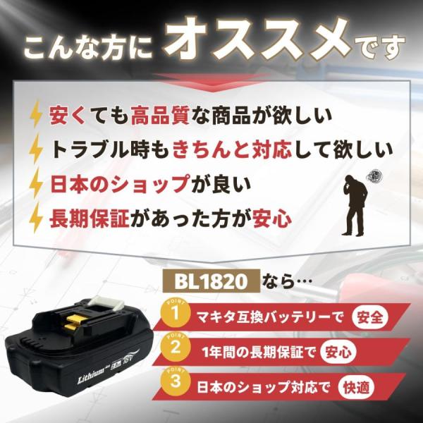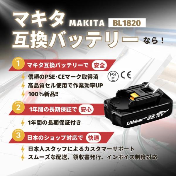 マキタ 互換品 BL1820 バッテリー 18V 2.0Ah 軽量 掃除機 PSE認証 コンパクト 保護回路 電動工具 純正充電器対応 (BL1820/1個)