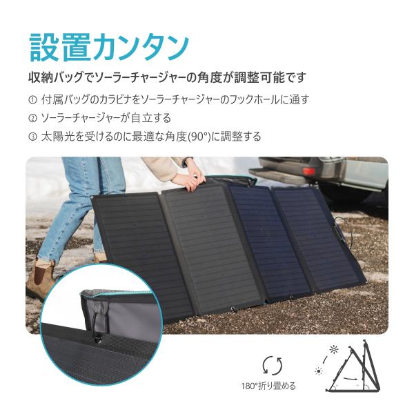 ソーラーパネル EcoFlow 160W (21.4V 9.6A) 折り畳み 防災 ソーラー充電器 EF-Flex-160 ソーラーチャージャー