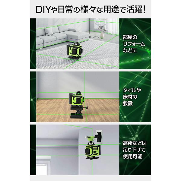レーザー墨出し器 \バッテリー2個付きの12点セット/ あすつくで最短翌日到着! レーザー レベル セルフレベリング、3D グリーン ビーム