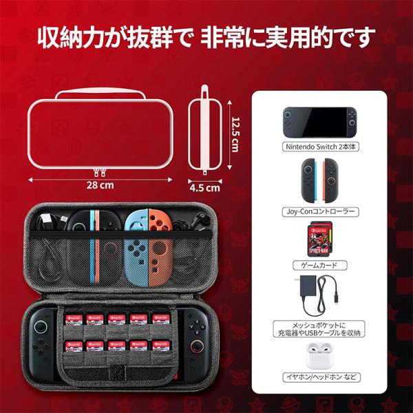 switch2 収納 ケース スイッチ キャリングケース Switch2収納バッグ ガラスフィルム 保護カバー付き ニンテンドースイッチ2 持ち運び便利 任天堂