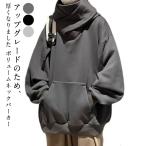 ボリュームネックパーカー カップル メンズ レディース 男女兼用 パーカー 秋服 長袖 プルオーバーパーカー フード付きパーカー スウェット ハイネッ
