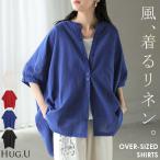 ブラウス オーバーサイズ レディース トップス 涼しい シャツ ロング 半袖 シャツブラウス ノーカラー チュニック 前開き ドルマン リネン混