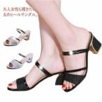 全3色 レディース ミュール サンダル キラキラ 大きいサイズ 夏 疲れない 痛くない 歩きやすい グリッター ハイヒール メタリック パーティ 通