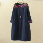 ワンピース チュニック 大きいサイズ レディース 40代 膝丈 ロング 体型カバー aライン 長袖 ひざたけ ゆったり 大きいサイズ 50代 緑 藍 秋 6L