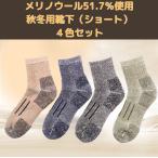 靴下 4色セット ウール ショート 暖かい 冬 秋 羊毛 メリノウール 羊毛配合 靴下 ソックス