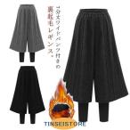 パンツ付きレギンス 裏起毛 ワイドパンツ レディース 40代 50代 レギンス 7分丈パンツ 春 秋 冬 ボトムス ストレッチ 重ね着風 レイヤード風