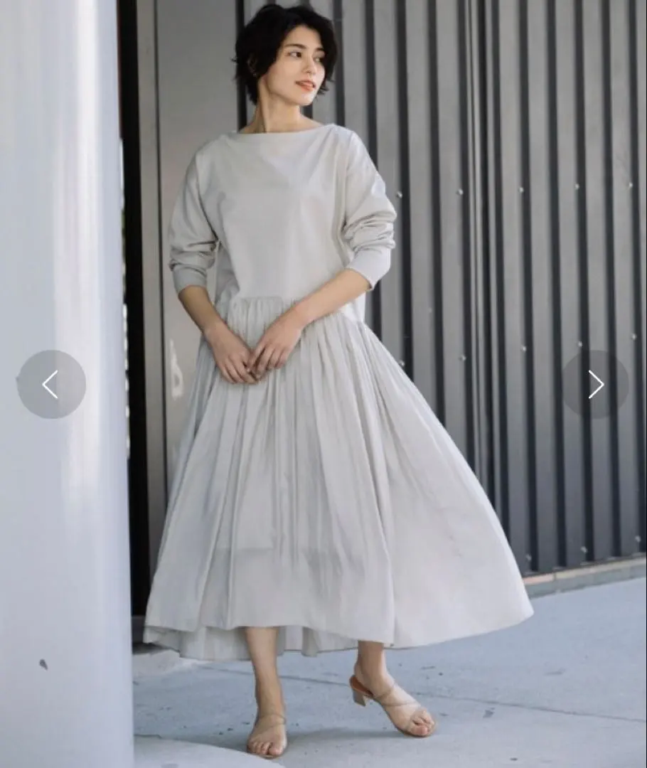 Munich トルファンコットンジャージー×サテン ドッキングギャザーワンピース