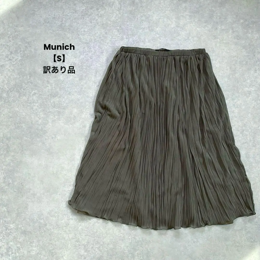 a1505*Munich プリーツスカート カーキ【S】カジュアル 訳あり品