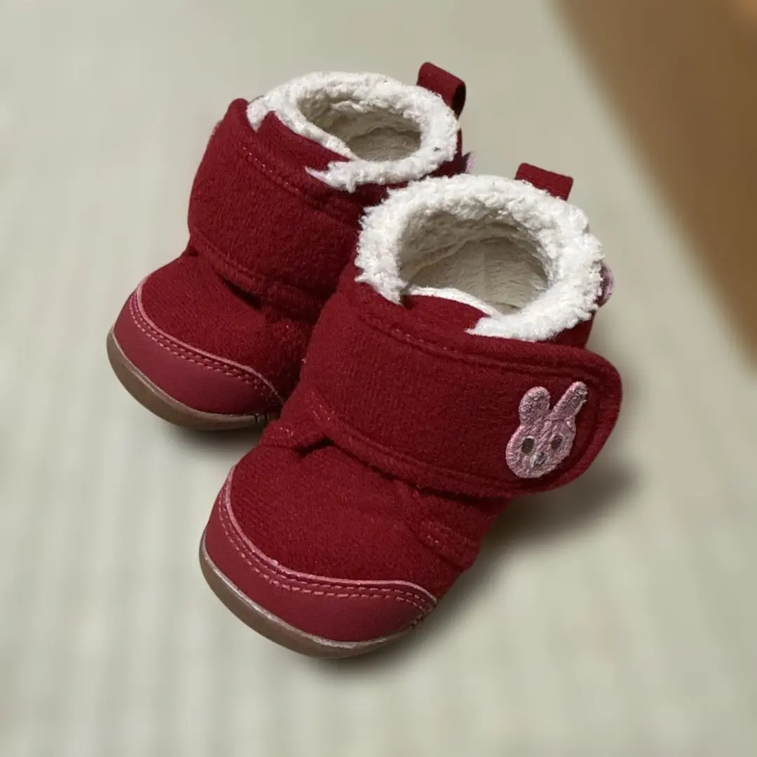 ホットビスケット うさぎデザイン 赤いベビーシューズ