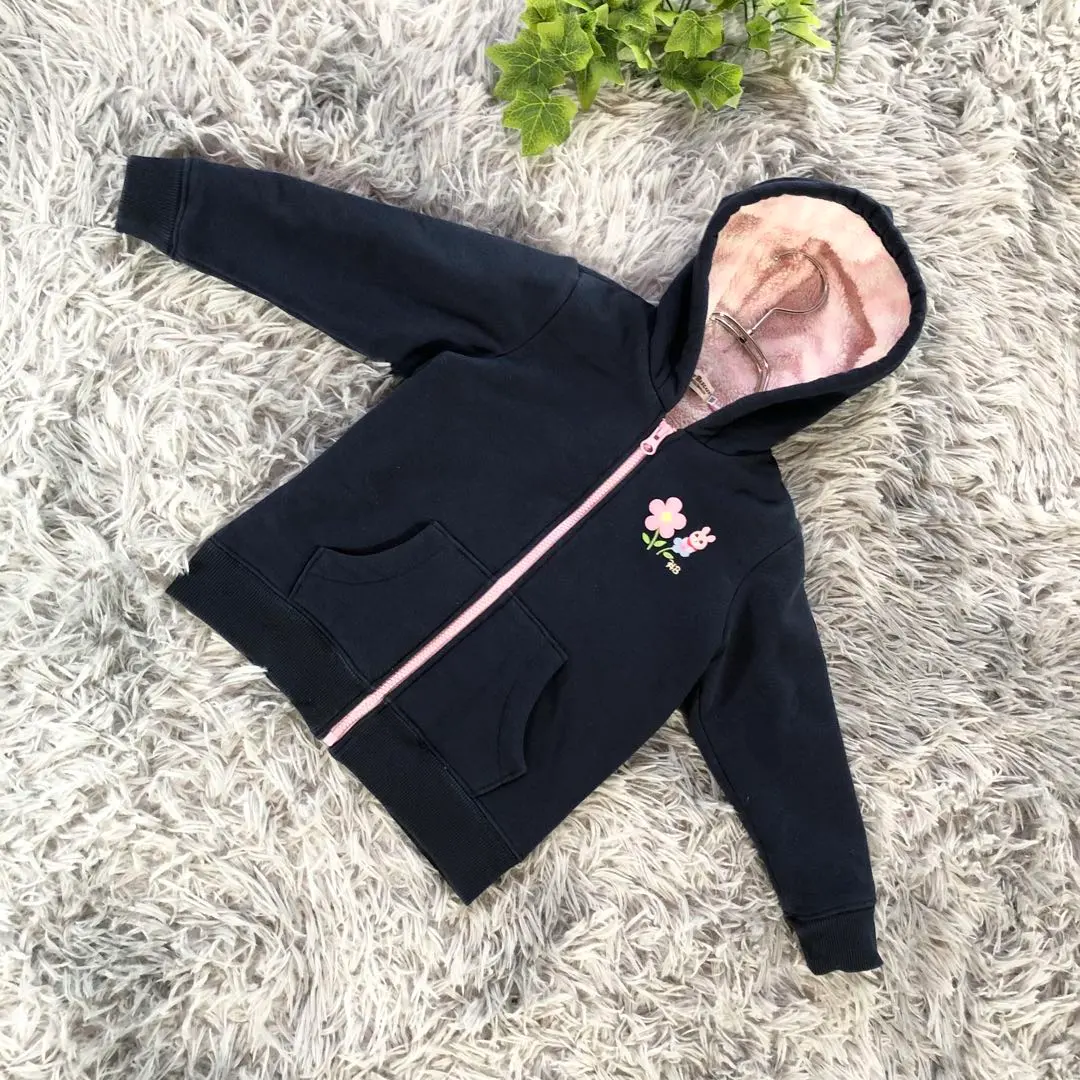 HOT BISCUITS【100】ネイビー 花 刺繍 パーカー 中綿 女の子
