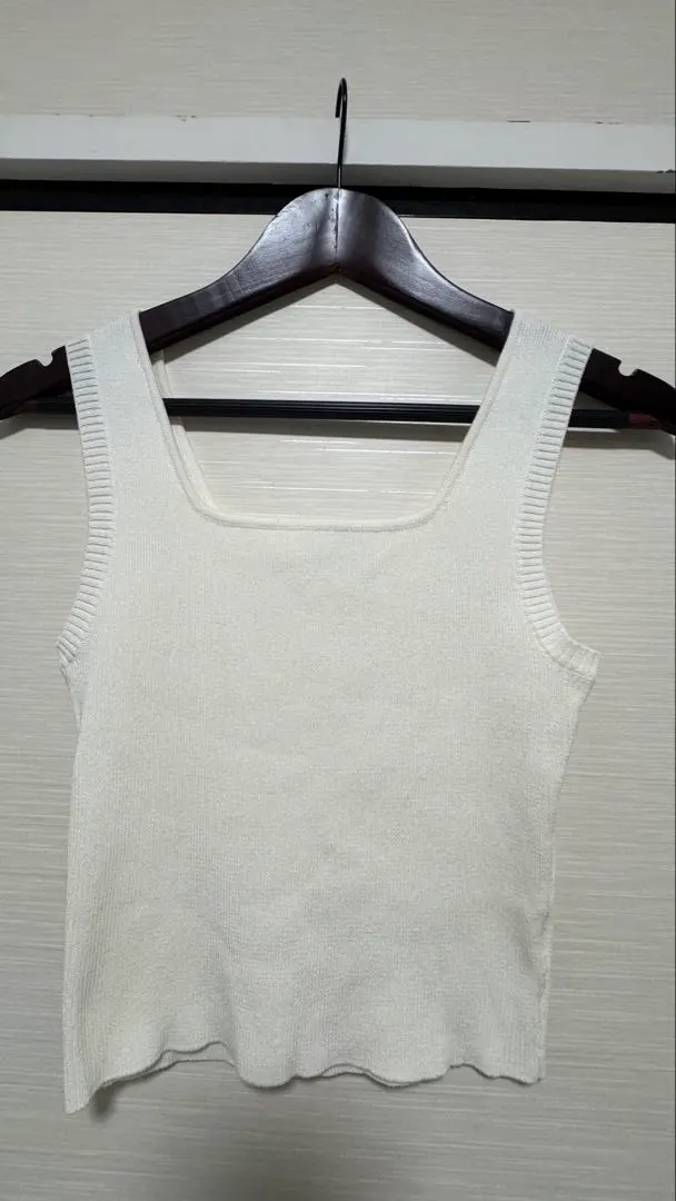 【MURUA】スクエアネック ニットタンクトップ リブ編み オフホワイト