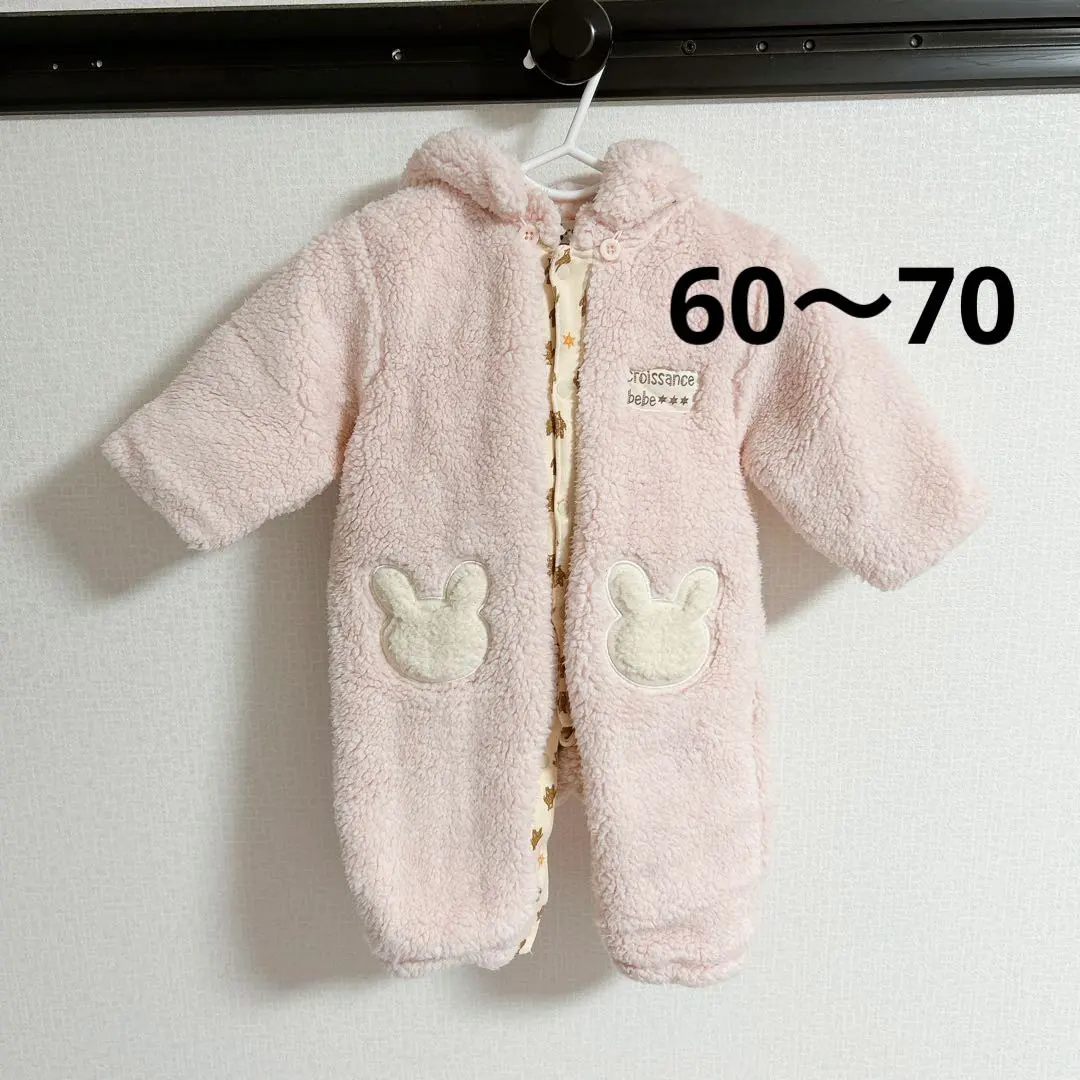 ジャンプスーツ 60 70 アウター ロンパース カバーオール ピンク もこもこ