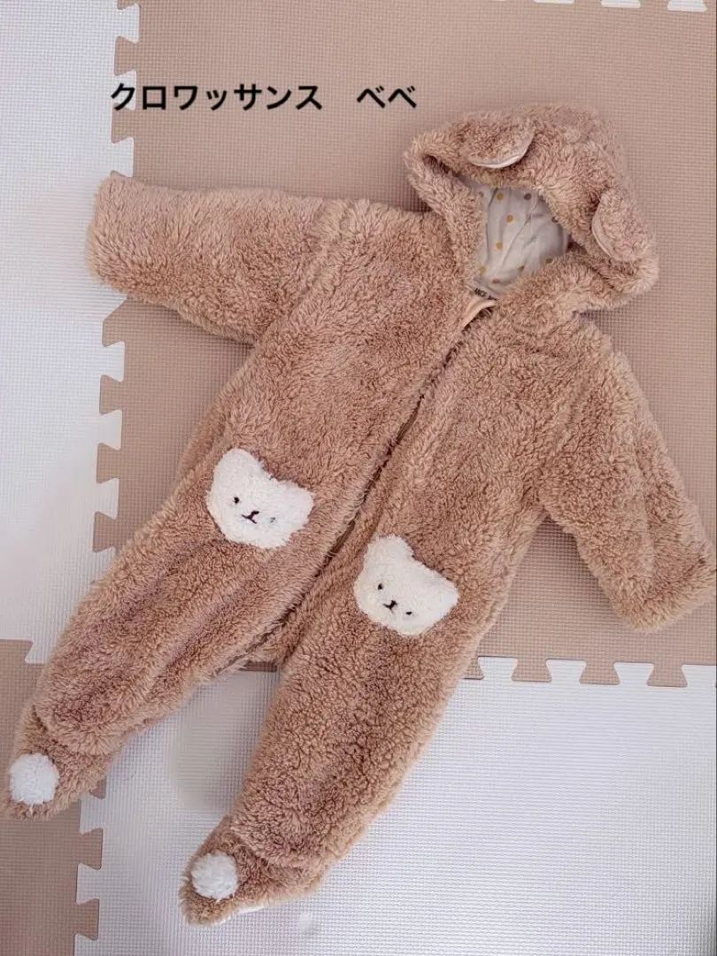 クロワッサンス べべ》ボア カバーオール【70~80】ベージュ ベアー ベビー