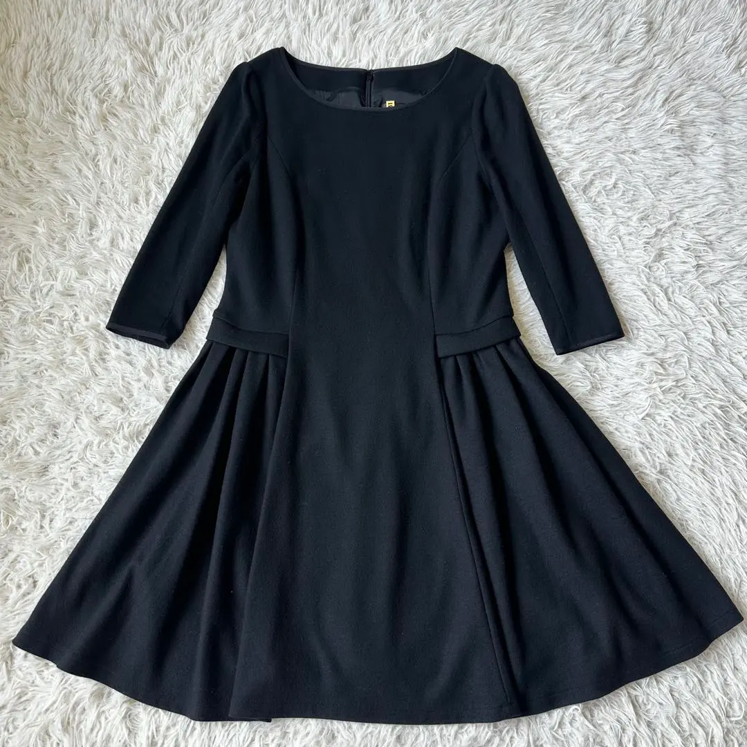 美品✨アンタイトル 膝丈ワンピース フレア 七分袖 ウール 黒 大きいサイズ