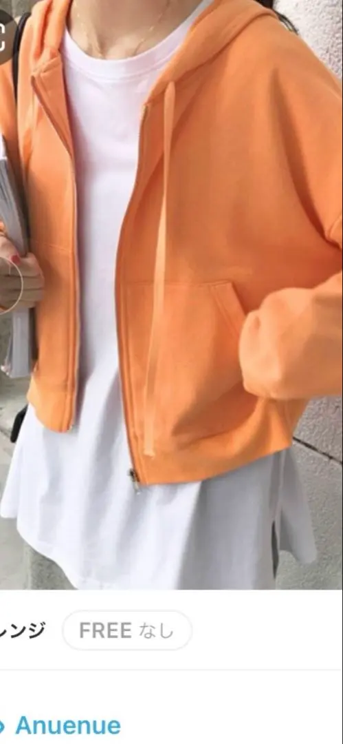 オレンジ フード付き クロップドパーカー