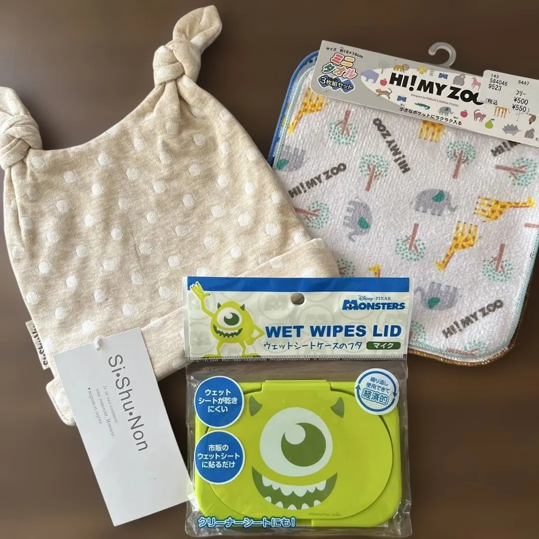 Si-Shu-Non ベビー用帽子&ハンドタオル3枚& ウェットシートケースフタ