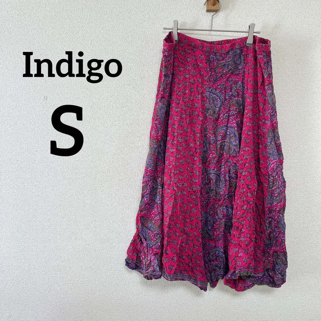 Indigo 【S】ペイズリー柄 フレアスカート ピンク ロングスカート