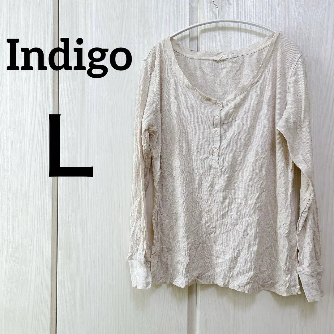 Indigo 【L】ベージュ 長袖 シャツ シンプル ボタン