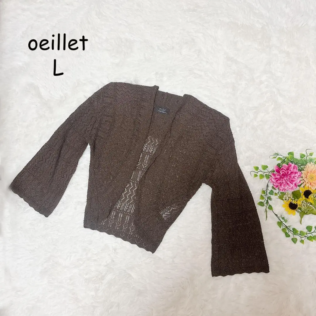 oe illet レース編みカーディガン Lサイズ オリーブグリーン