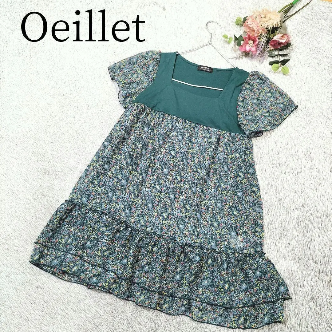 ウイエ oeillet チュニック ワンピース 長袖 7分袖 M 裾レース